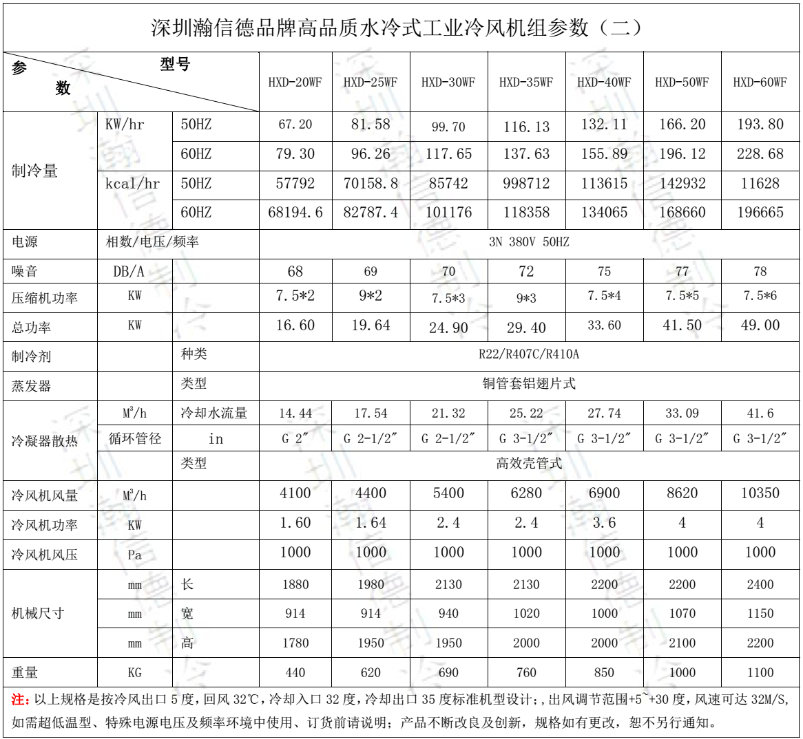 機型選擇:深圳瀚信德品牌高品質水冷式工業冷風機有3HP-60HP水冷式工業冷風機可選, 特殊電源電壓/特殊頻率,3相440V/60HZ,3相220V/60HZ、3相480V/60HZ,零下10℃直出風、零下10℃直出風,使用R407C,R404A,R134A環保冷媒、出口型等特殊要求或更大機型可訂制,低于零下10以下出風需要做循環風制冷。